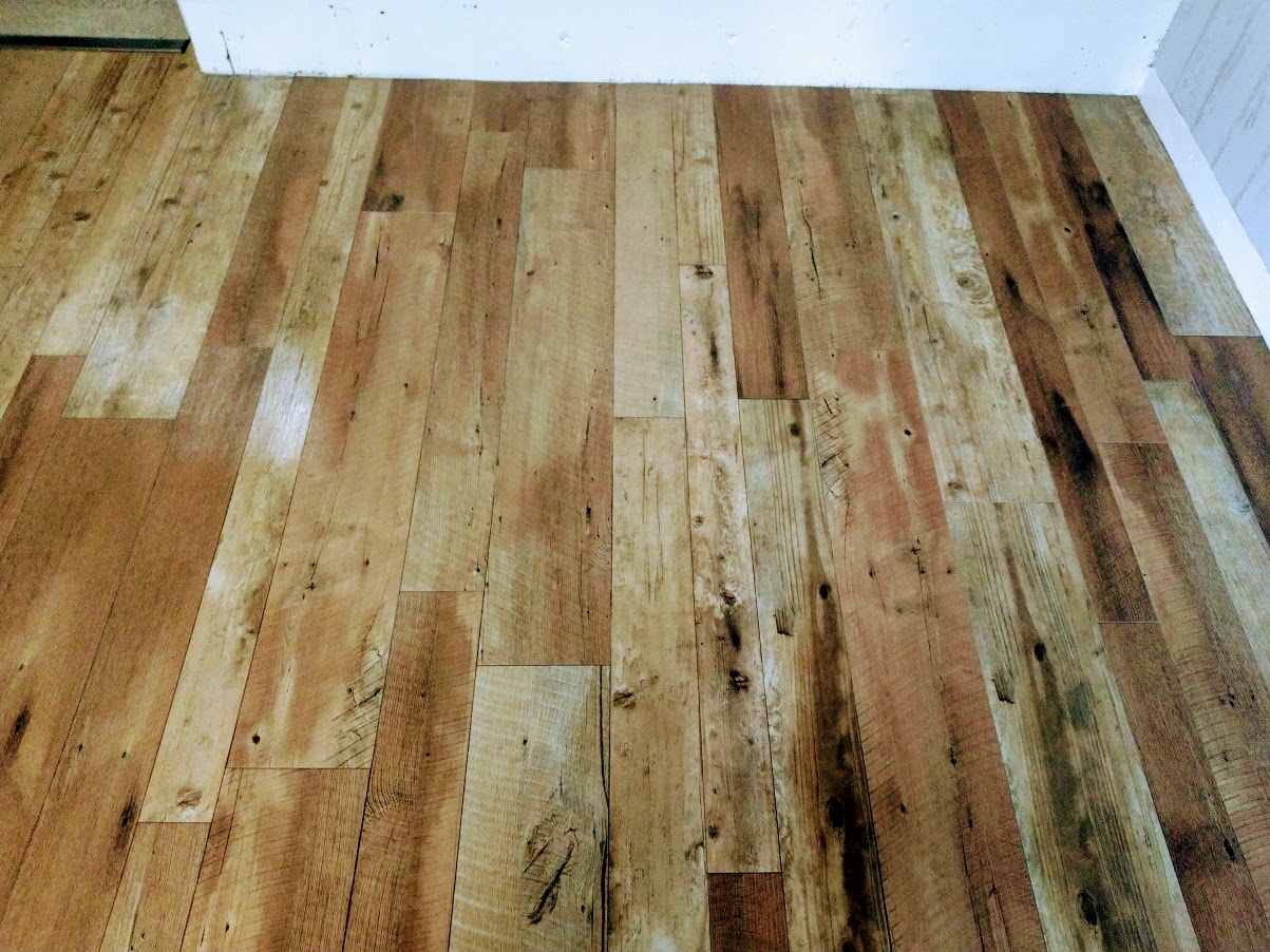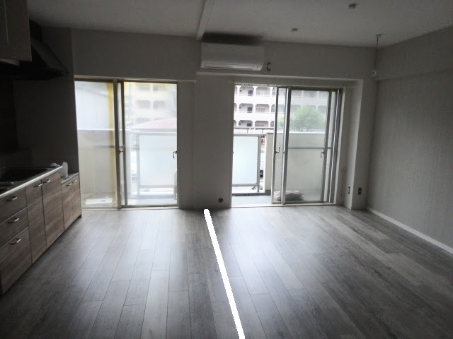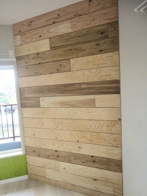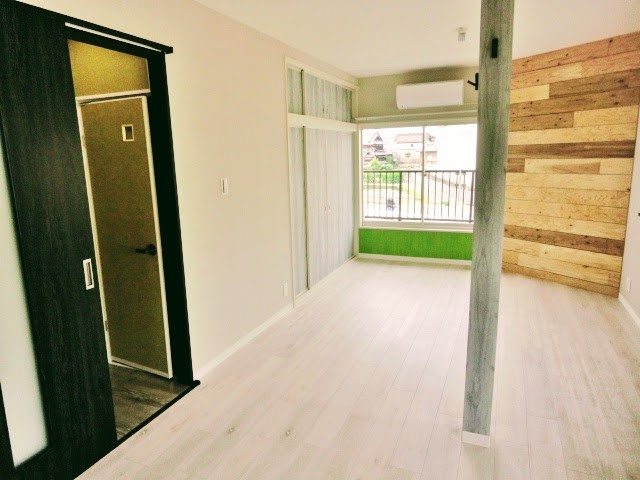中央の柱はもともと分断していたお部屋を一体化したときの構造柱。 平成初期の建物は、部屋を細かく分けている間取りが多いです。 こちらは、マンションでの間取り一体化パターン。 当初はこの白いラインでキッチンとリビングに分離されていました。 完成後の同じお部屋を窓側から撮影。ドアを新しく、そして高さのあるものにすることで、「古臭さ」は大きく変わります。奥は天井にカーテンレールを設置し、ベッドルームや収納スペースの目隠しなど、区切ることも可能に。 ドアの種類によっては、そのままクロスを貼ることもできます。 壁とドアを一体化したクロスで、ドアも一つの壁のように。 ヘリンボーン柄の生地をご存じでしょうか。「ニシンの骨」という意味で、魚の骨のような形が特徴です。これを床や壁の貼り方に使うことがあります。その独特のデザインが店舗では好まれ、アパレル店舗の「ナノ・ユニバース」などでは、古木の細いヘリンボーンの床が特徴的です。 当社の物件でも、ヘリンボーンを採用することがあります。職人の技術が求められ、費用も少しかかりますが、床材自体が高価でなくても、仕上がりの美しさから床そのものをランクアップさせてくれます。 モロッコタイル柄を使用したトイレ。こちらはモノトーンですが、モロッコタイルといえば、カラフルな幾何学模様で雰囲気があります。 出っ張ったガラス張りの窓が珍しい物件。オイル塗装の風合いを出した床材を使用し、窓の天井には、この眺望を邪魔しないよう、地味に室内物干し「ホスクリーン」を天井に取り付けました。 寒暖差や、雨や日照りの中で長い時間をかけて風化していくアンティークウッド。この過酷な環境下でしか生まれない独特の表情は自然のたくましさを感じさせてくれます。床材やインテリアに取り入れることで、古き良き時代を感じるとともに、空間にリラックス感を与えてくれます。 この床材は、そんなアンティークウッドをデザインしたものです。 フローリング巾やエンボス(木目の溝)の異なるものをミックスさせて使用することでより雰囲気を出すことができます。 これは本棚の写真ではありません。こんなクロスもあるのです。 玄関と廊下を連続したレンガ柄床材とすることで、玄関からのシームレスな造りに。 廊下壁面にマグネットボードとタオル掛けを縦に重ねて配置。 何もなかった壁面がこれだけで自由度が高まります。 配管の色をグリーンに。配管を目立たせるという逆の発想です。 濃い目のレンガクロス キッチンの延長で壁に取り付けた造作棚です。注目は棚の穴。 ここに照明器具やパソコンを置くなどした場合、穴がないとコードが棚の前までダランとすることになります。棚の真下はコンセントなので、穴を通してそこに直結させ、見た目もすっきり。 レンガクロスをトイレにも。黒い床材と組み合わせて、ブルックリンスタイルに。