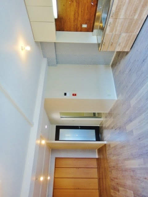 クロスのように見えますが、本物の板張りをしました。 手間はかかりますが、木の匂いと手触り感。一部でも本物を使用すると空間全体のグレードが上がります。 モニターホンや白のスイッチの背景に木目は映えます。 この壁の欠けは、地震の損傷ではありません。 この部分はもともと、古いクローゼットがついており、空間の自由度を高めるため、思い切って取り外しました。もともと隠れている部分でしたので、仕上げが粗くなっていますが、コンクリートに白塗装し、その欠けも含めた味わいに仕上げました。 |